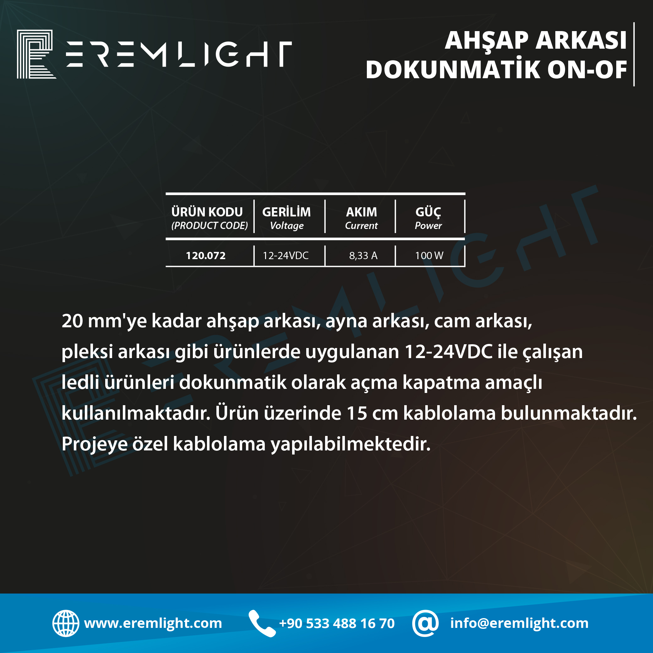 pleksi arkası gibi ürünlerde uygulanan 12-24VDC ile çalışan