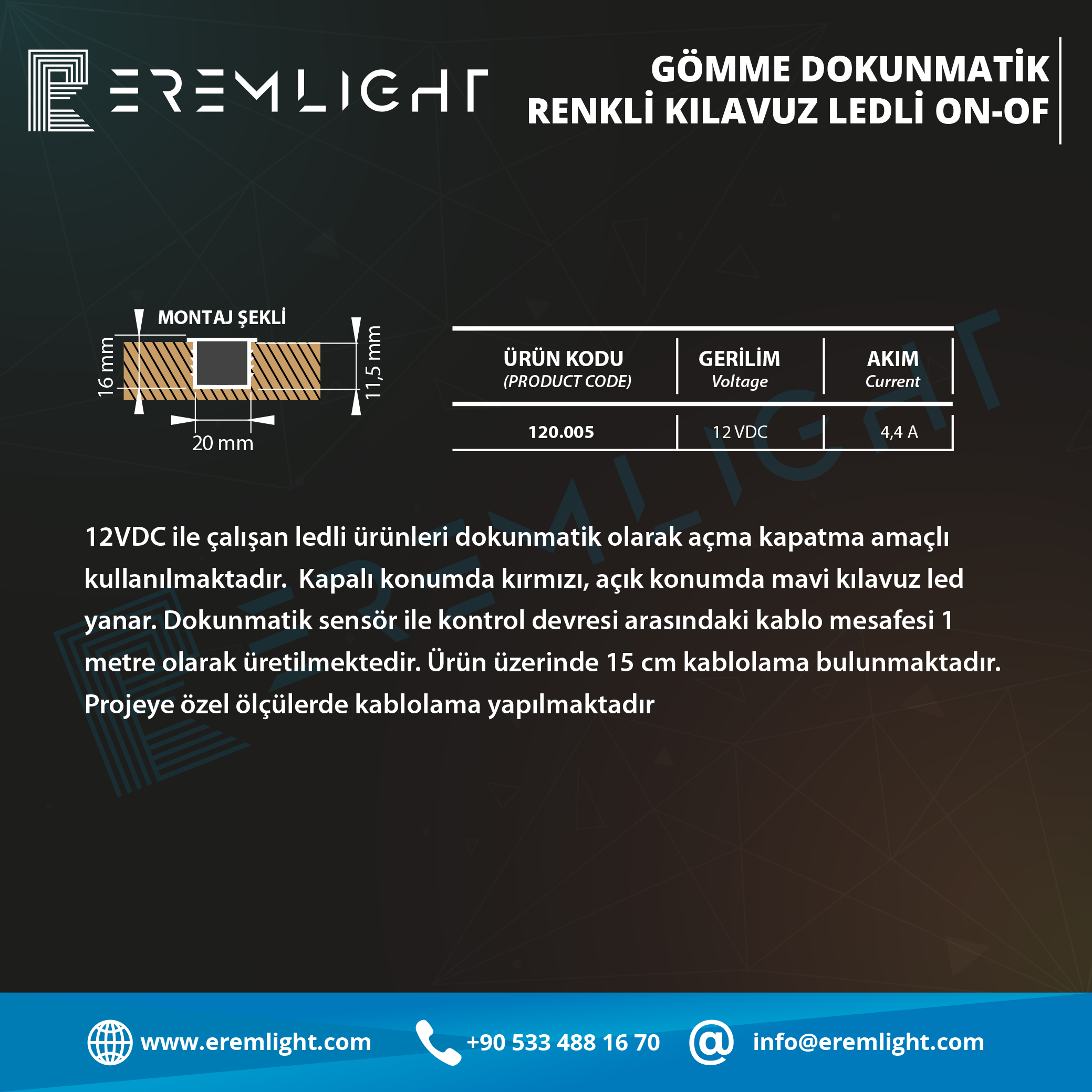 GÖMME DOKUNMATİK RENKLİ KLAVUZ LEDLİ ON-OF