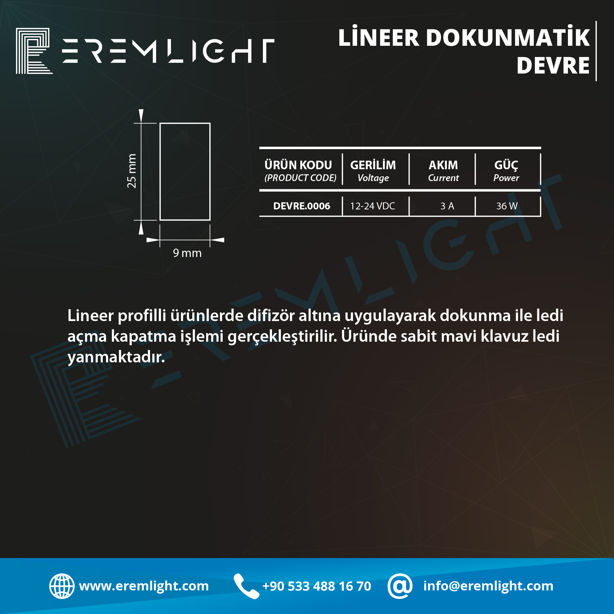 Lineer profilli ürünlerde difizör altına uygulayarak dokunma ile ledi